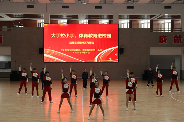 3月26日,球速体育平台体育系师生走进浑南区创新第一小学,开展“大手拉小手 体育教育进校园”主题活动。活动伊始,沈科学子以精湛的技艺和饱满的精神状态,为创新一小的师生们表演了啦啦操、花样跳绳等体育项目,队员们随着动感的音乐,以整齐划一的动作点燃了全场的气氛。此次活动以雷锋月为契机,既是高校服务地方教育的生动实践,也是体教融合的创新探索。
