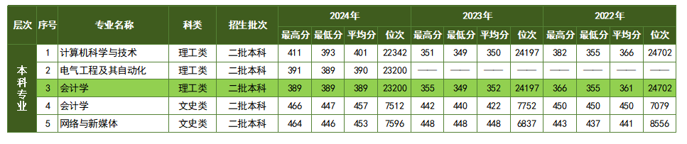 本科专业近三年宁夏回族自治区录取分数线