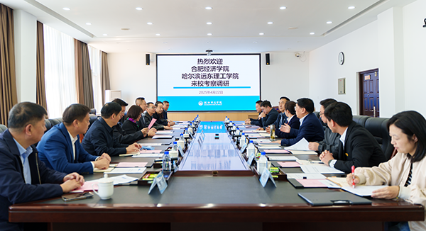 宋吉鑫代表学校,对合肥经济学院和哈尔滨远东理工学院给予学校发展建设的亲切关怀表示感谢。他指出,近年来,学校持续深化产教融合,优化课程体系,强化实践教学,在师资队伍建设、教学质量保障、学生创新创业能力培养等方面取得了显著成效。此次调研交流不仅是与兄弟院校间互联互通、互取所长的宝贵机遇,更是协力探索努力办好人民满意教育的有效举措。希望通过此次交流,能够与兄弟院校间实现教学互通、科研互融、信息互享、资源互补,携手续写共赢发展的崭新篇章。