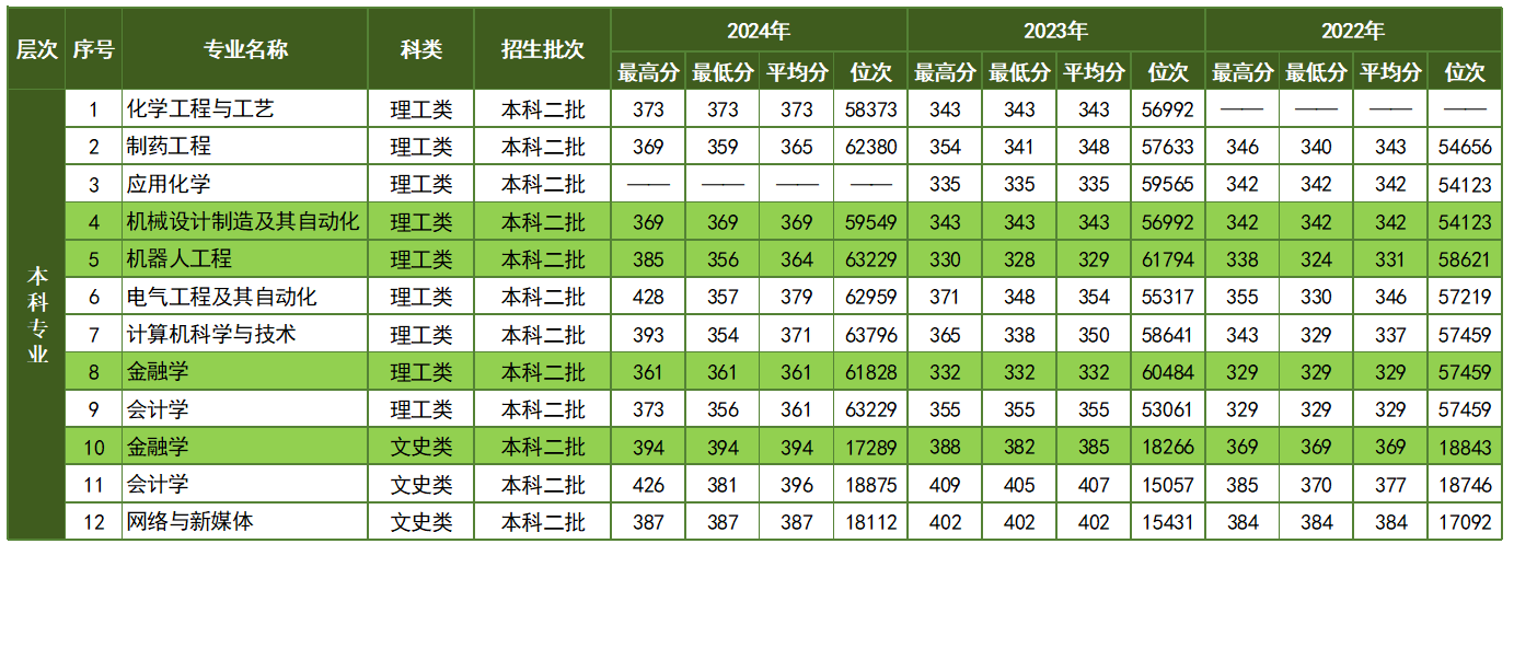 本科专业近三年内蒙古自治区录取分数线