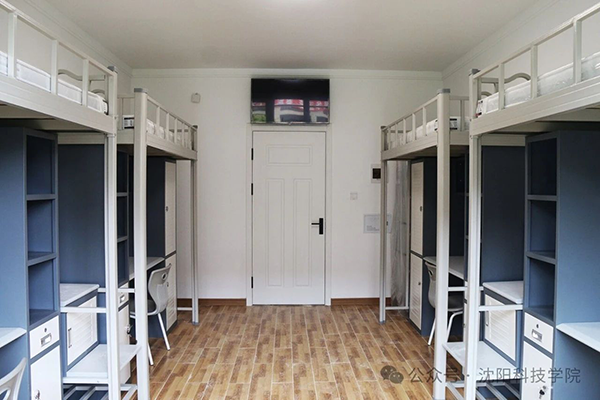 学校建有标准化精装4人间学生公寓,空调、电视、冰箱、洗衣机等设施一应俱全,并配有运动、文娱等校园生活场所,环境优美、宜学宜居,打造“家”的氛围。