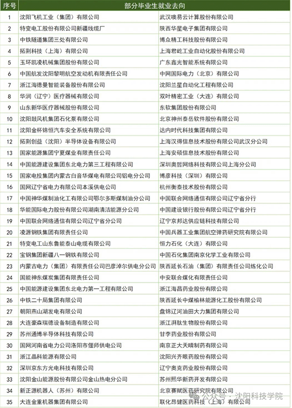学校与华为技术有限公司、中软国际集团、东软教育集团、中嘉博众集团、北京甘李药业、辽宁奥克集团、辽宁晋德机械制造有限公司、沈阳兴齐眼药有限公司等200余家企业开展深度合作,不断深化产教融合与校企合作,构建协同育人机制、实践育人机制和就业育人机制,聚焦学生创新精神和职业精神塑造,聚焦学生实践能力和创新能力培养,注重“访企拓岗”专项行动的针对性和实效性,着力拓展就业市场、拓宽就业路径,确保毕业生高质量充分就业。