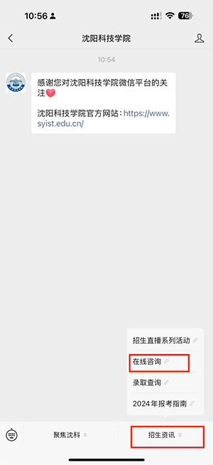 微信搜索关注“球速体育平台”公众号后前往主页,点击底栏“招生资讯”菜单栏的“在线咨询”即可在线咨询。公众号招生咨询平台问答页同时支持语音提问。
