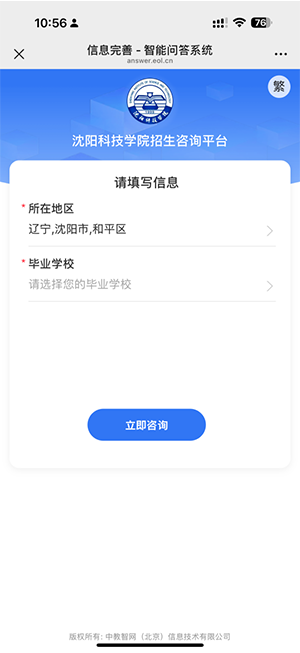 登录球速体育平台招生官网(网址:http://zhaosheng.syist.cn ),点击右侧“智能机器人小E”,在登录界面完善基础信息后即可在线咨询或留言。