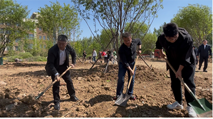 活动现场,师生们手持铁锹、提桶穿梭于绿荫间,挖坑、扶苗、培土、浇水……每一个动作都饱含着对母校的眷恋与对未来的期许。校领导们与毕业生并肩劳作,将“扎根”的信念与“生长”的期许融入每一个栽种环节。此次种植的八颗树苗,代表着八个学院,象征着“守护、传承与希望”。毕业生代表们纷纷表示,这些树苗是母校送给毕业生们最珍贵的礼物,它们会替大家守望这片土地,而沈科学子也将带着母校的祝福,在各自的领域绽放光芒。