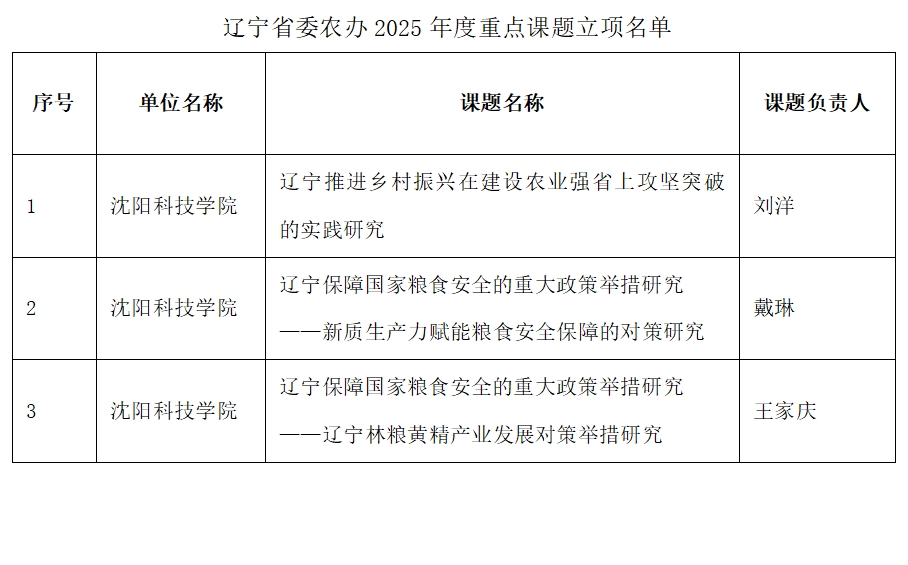 球速体育平台获批3项辽宁省委农办2025年度重点课题立项