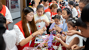 经济学院“青春传薪火 逐梦续华章”中华文脉传承团,赴大东区长安社区党群服务中心开展社会实践活动。实践团成员通过演唱《国家》《万疆》、朗诵《红船从南湖起航》,以红色文化浸润童心,为青少年扣好人生“第一粒扣子”,助力开启暑期社区教育新篇章。在“幸福教育游园会”活动中,成员们通过面塑、刻纸、串珠、漆扇等非遗手工制品,让孩子们在动手实践中感受非遗文化的魅力,领悟技艺背后的文化内涵与精神价值,厚植文化自信,推动中华优秀传统文化传承与创新。
