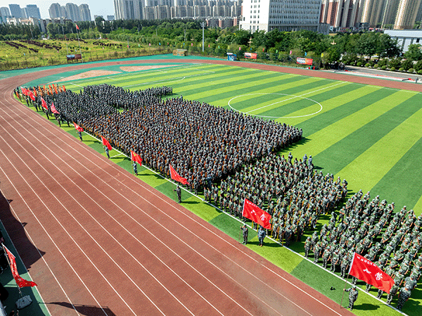 由党旗、国旗、校旗方队领衔,各营连方队依次接受检阅。女子持枪方队英姿飒爽,战旗方队气势如虹,各营连以整齐划一的步伐、铿锵有力的口号展现军训成果。